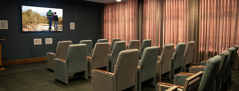 Not only do we want your business’s small-scale theater room to look like a traditional movie theater with state-of-the-art projector technology, but we want it to sound like the best in entertainment, as well. With our custom movie theater audio systems, we can make your guests feel like they’re sitting in a large, commercial theater while still on property. With the customized lighting and audio systems, you get the real feeling of being at the movies.